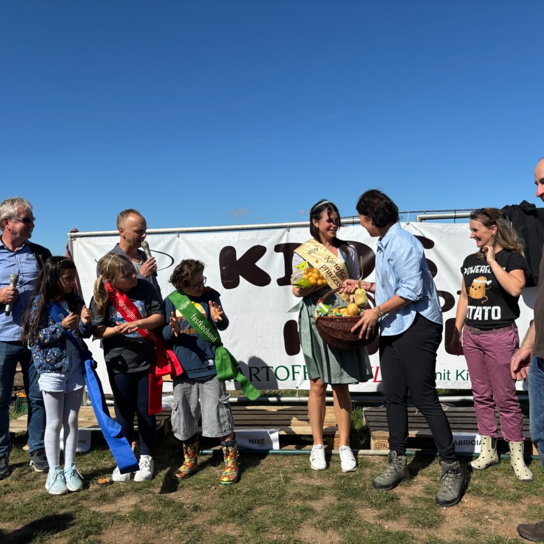 Ein feierlicher Moment war die Krönung der neuen Kartoffelprinzessin Lea I., die künftig als Botschafterin der Thüringer Kartoffel unterwegs sein wird – mit Herz für Regionalität, Nachhaltigkeit und kindgerechte Ernährungsbildung. Gemeinsam mit der Gemeinde “ Am Ettersberg“ konnten wir erfolgreich auf die Suche nach der neuen Kartoffelprinzessin gehen und haben Sie gefunden. Ihre erste Amtshandlung ließ nicht lange auf sich warten: Mit neugieriger Miene und gutem Geschmackssinn verkostete sie gemeinsam mit den Gästen die diesjährigen Kandidatinnen zur „Thüringer Kartoffel des Jahres 2025“.