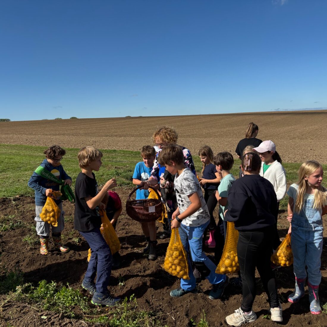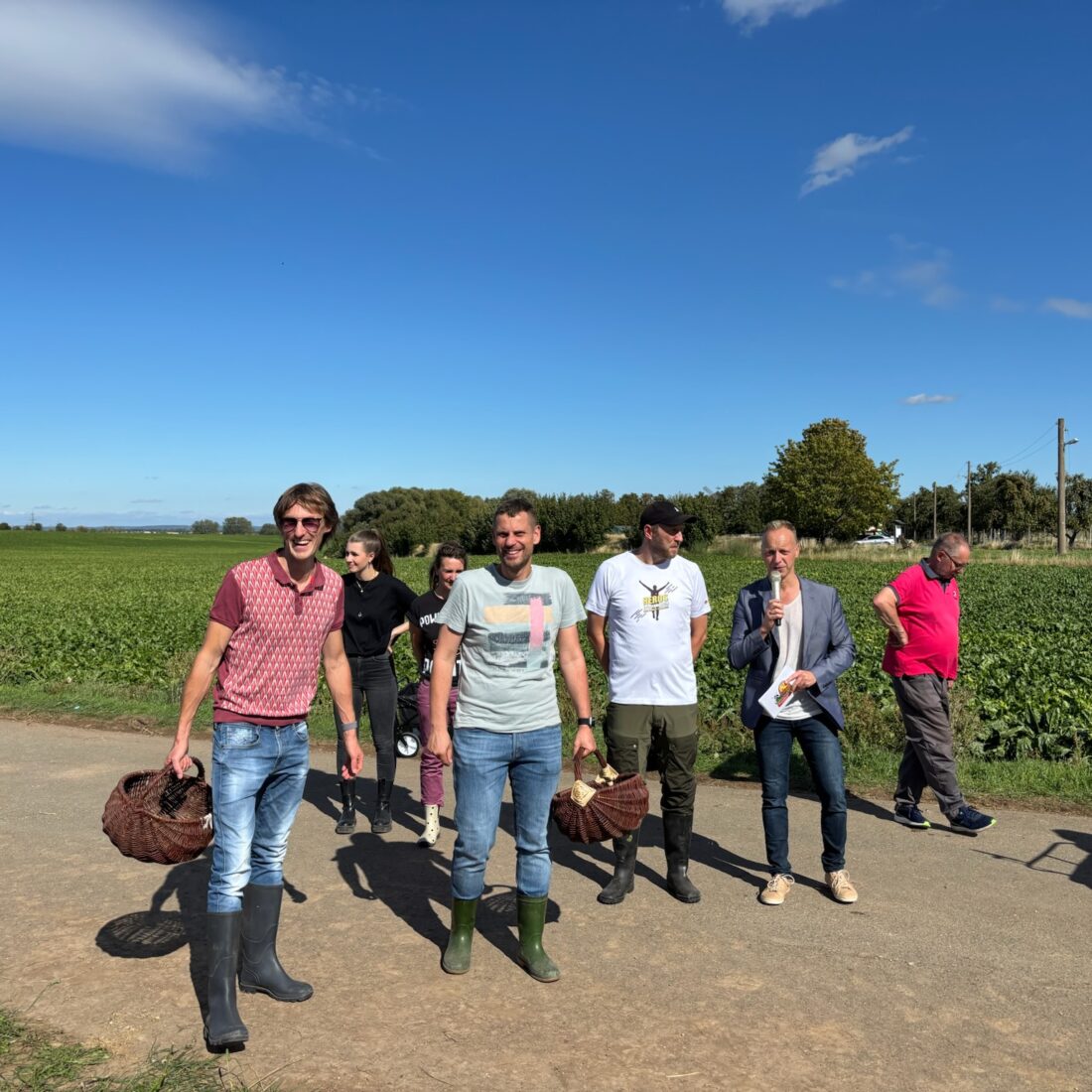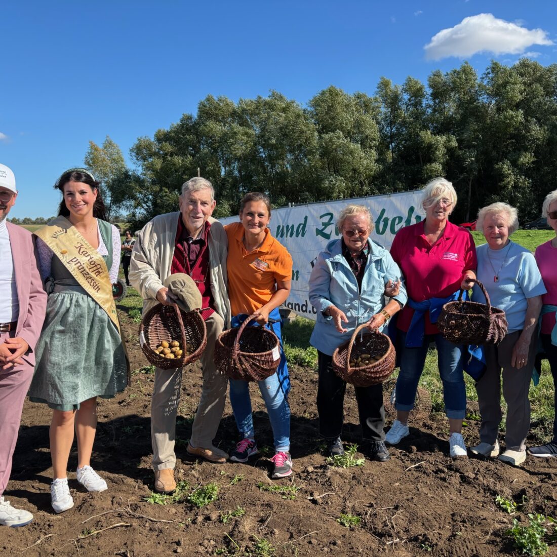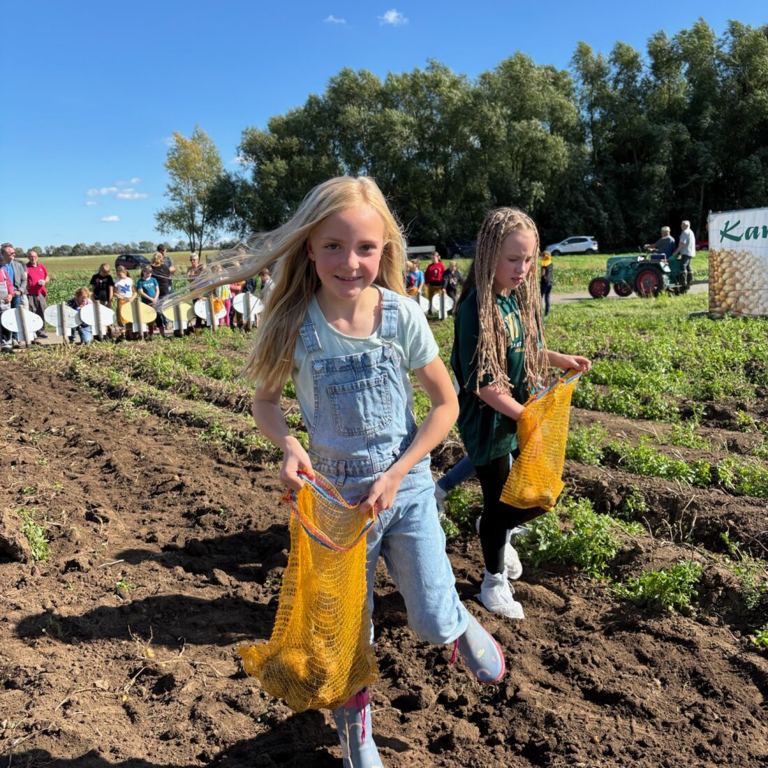 Auf dem Acker in Heichelheim herrschte reger Betrieb am 18.9.2025: 80 Kinder aus der Pestalozzi-Grundschule Weimar und der Kita Heichelheim halfen bei der diesjährigen Kartoffelernte – begleitet von zahlreichen prominenten Unterstützerinnen und Unterstützern aus Politik, Medien, Kultur, Landwirtschaft und Wirtschaft.