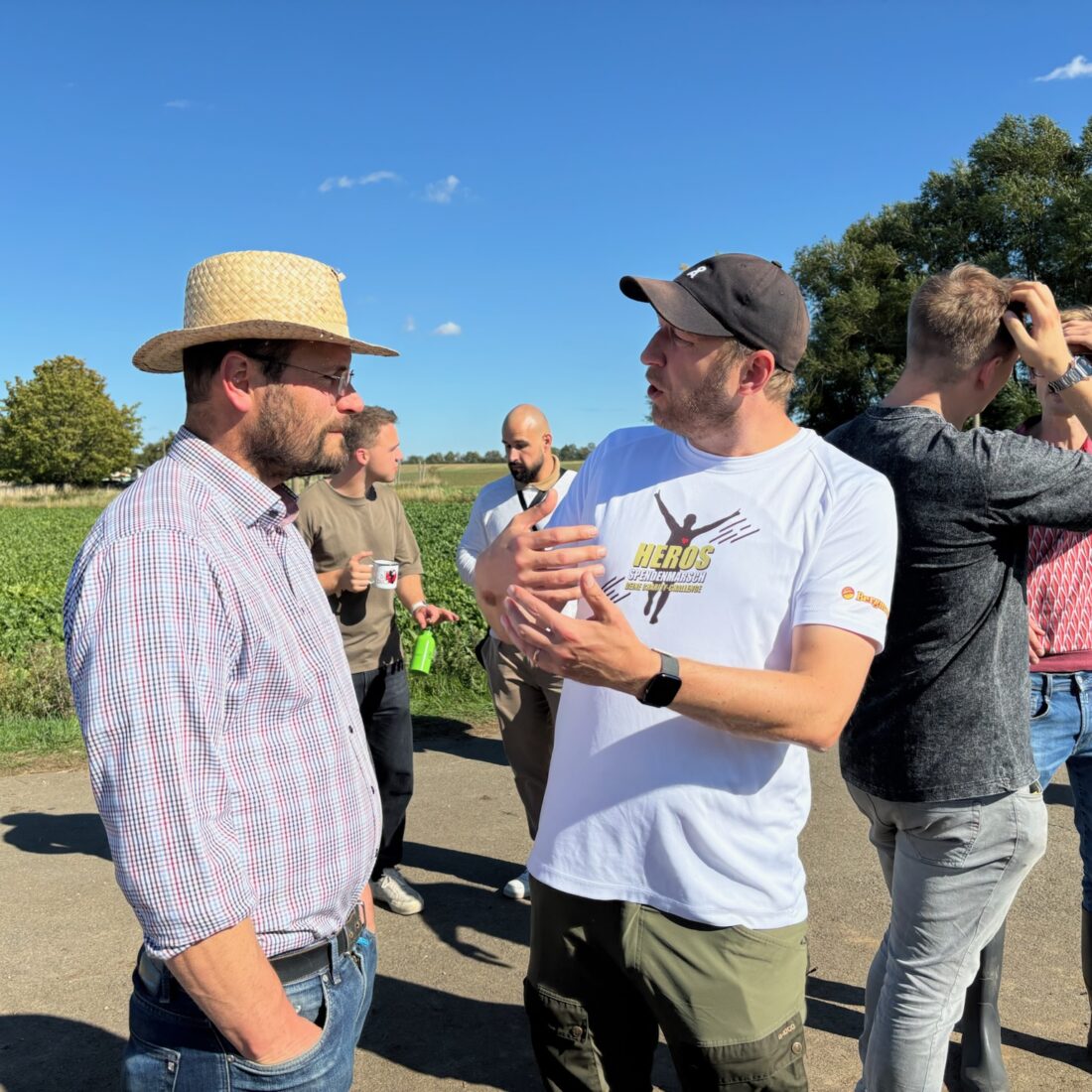 Begleitet wurde die Ernte von Vertreterinnen und Vertretern des Thüringer Bauernverbands, der Thüringer Landesanstalt für Landwirtschaft (TLLLR) sowie des Wirtschaftsministeriums Thüringen, die sich im Dialog mit Erzeugern, Verbänden und Gästen aktiv einbrachten.